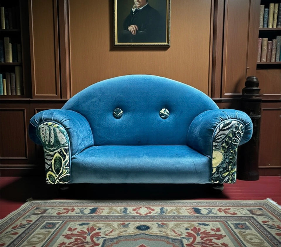 Le tissu d'ameublement provient du Distributeur Létourneau à Québec, un fournisseur reconnu pour la qualité de ses tissus, toiles, mousses et accessoires de rembourrage.